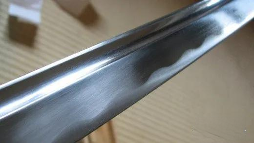 Hold the stem of the knife with your left hand, with the blade facing forward, and hold the powder stick in your right hand, and tap lightly on the knife body at an even interval of about three to five times. Personal experience is: if there is a lot of old oil, you can beat the powder several times, evenly spray the powder on the surface of the japanese katana swords blade, and leave it for a period of time to allow the powder to absorb the oil. The powder has a strong oil absorption capacity.